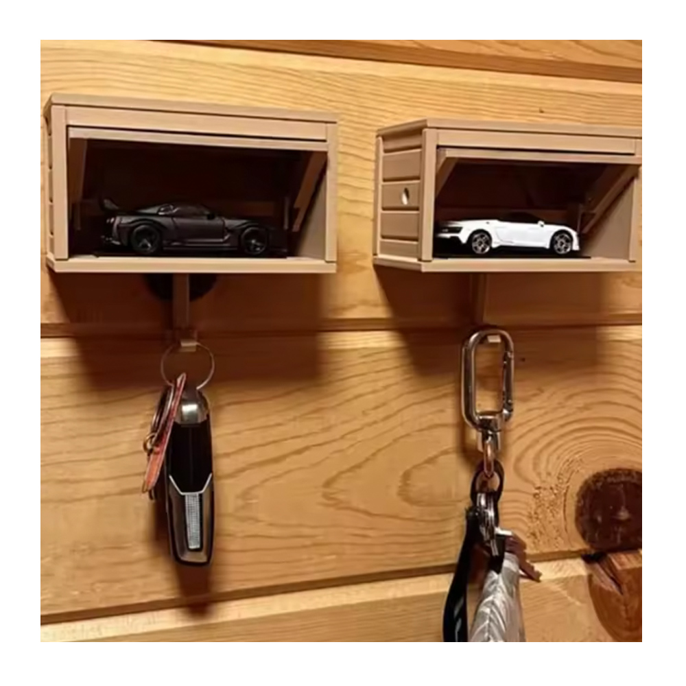 A kulcstartó különlegessége a mini garázst formázó doboz, amely automatikusan kinyílik, amikor a kulcsot ráakasztod a kampóra. A belső térben akár egy kisméretű modellautó is elhelyezhető (nem tartozék).