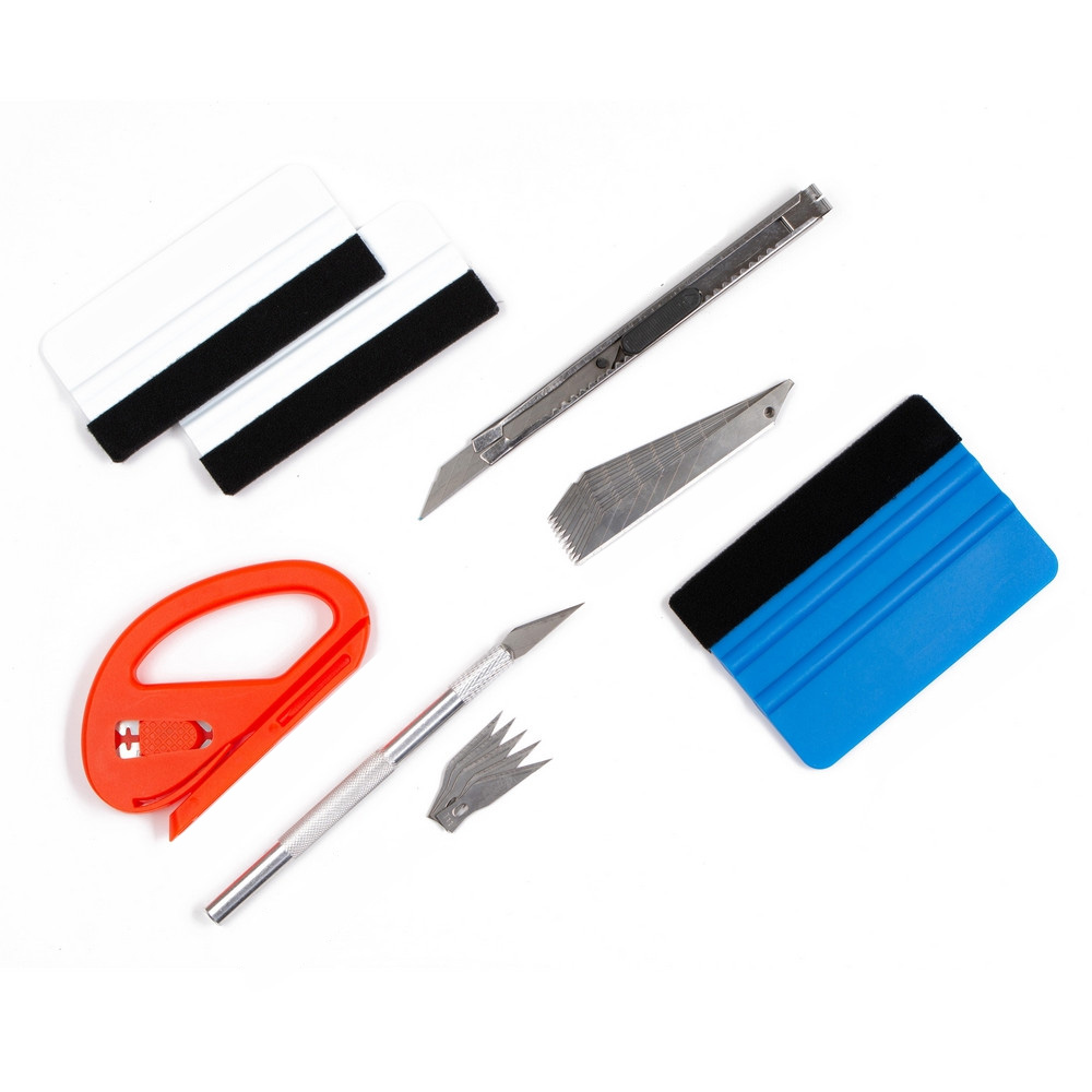 Autó fóliák és matricák telepítésére kialakított készlet. Minden olyan eszközt tartalmaz amivel kényelmesen és szakszerűen lehet dolgozni.
