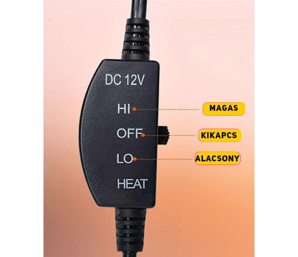 Két fokozatban állítható a fűtés erőssége, elérhető egy alacsonyabb hőmérsékelet és egy magasabb hőmérséklet funkció is.