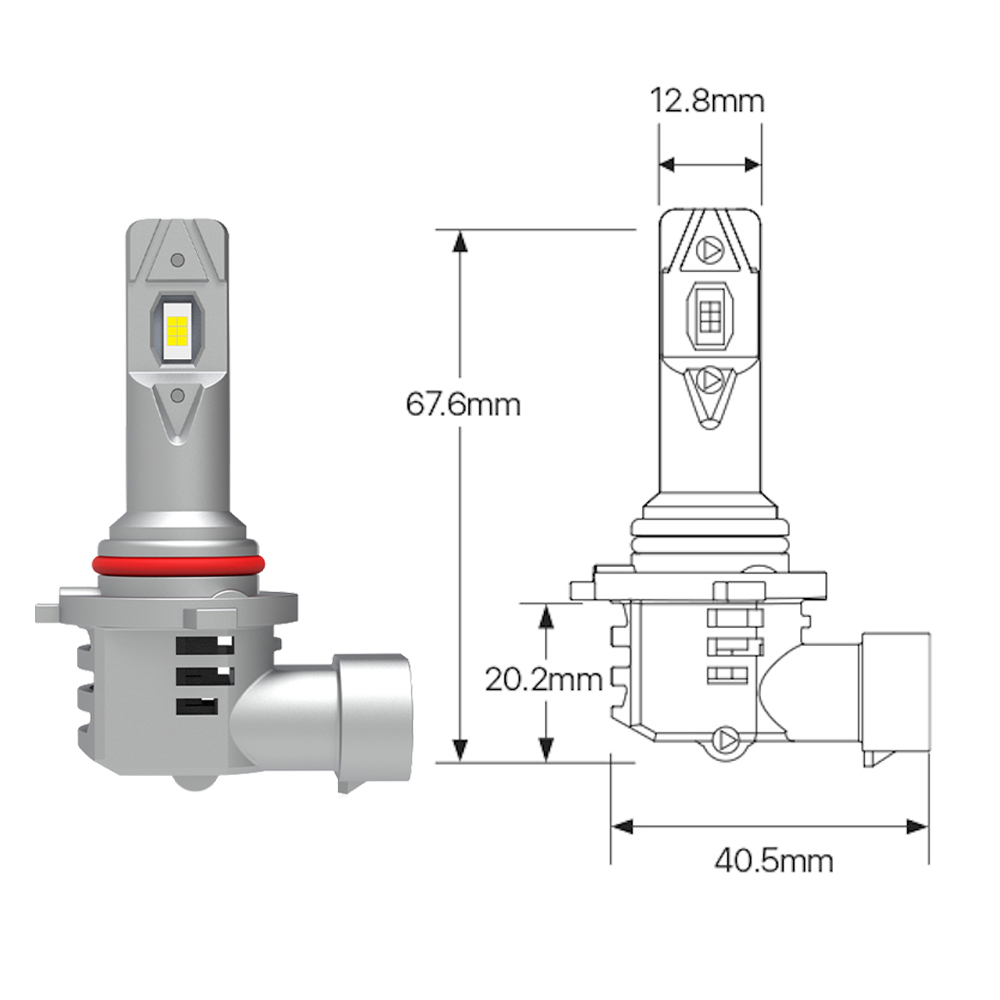 A mérete és a gyujtópont elhelyezkedése szinte miliméterre pontosan megegyezik a gyári HB3 izzóéval. Ennek köszönhetően az olyan lámpatestekbe is berakható, amelyekbe csak a gyári méret fér be.
