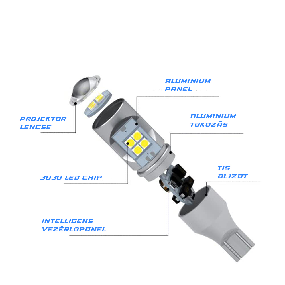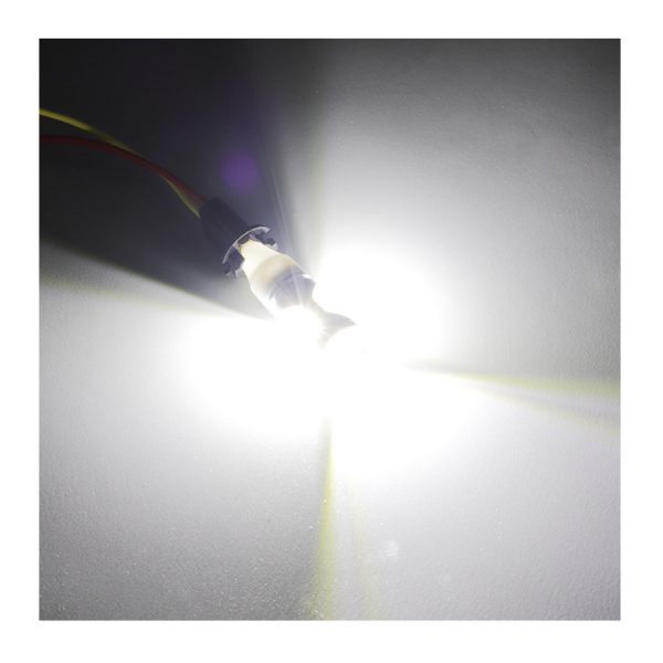 Az izzó hideg fehér fényű SMD leddel rendelkezik, és Canbus rendszerű autóval is kompatibilis.