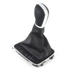 A váltószoknya fekete színű fekete varrással. Kompletten a beépítőkerettel össze van szerelve, így nagyon egyszerű a cseréje. A szoknya és a váltógomb anyaga bőr. A váltógomb automata, kompletten a kapcsológombbal együtt. A betétek matt ezüst színűek, a váltógomb tetején DSG felirattal.A képeken látható piros fül csak a beszerelésig szükséges rá, ez rögzíti a kapcsológombot. Ezután le kell pattintani.